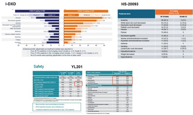 ÏÖÔÚ£¬£¬£¬£¬£¬HS-20093ºÍI-DXD¶¼ÒÑÐû²¼ÈýÆÚ¼ÁÁ¿£¬£¬£¬£¬£¬HS-20093Ñ¡ÔñÁ˽ϵ͵ļÁÁ¿×é8mg/kgºÍI-DXDÑ¡ÔñÁ˸ü¸ßµÄ12mg/kg£¬£¬£¬£¬£¬¶øYL201»¹Î´Ðû²¼£¬£¬£¬£¬£¬»òÐí»áѡȡ2»ò2.4mg/kg£¬£¬£¬£¬£¬ÏÖÔÚûÓе¥¶ÀÅû¶¹ýÕâÁ½¸ö¼ÁÁ¿×éµÄ¸÷×Ôϸ½ÚÐÔÓÐÓÃÊý¾Ý¡£¡£¡£¡£¡£¡£¡£¡£Õâ¾Í±£´æÒ»¸öÎÊÌ⣬£¬£¬£¬£¬ÈôÊÇѡȡ2.4mg/kgѪҺѧ¶¾ÐԾͺܴ󣬣¬£¬£¬£¬ÈôÊÇѡȡ2mg/kg£¬£¬£¬£¬£¬YL201ÔÚ0.8-2mg/kg¼ÁÁ¿×éδµÖ´ïÏßÐÔPK£¬£¬£¬£¬£¬PK¾ÍÂԲ£¬£¬£¬£¬ÐèÒªÒ»¶¨µÄÕå×㬣¬£¬£¬£¬´ÓÈë×éÈËÊýÀ´¿´£¬£¬£¬£¬£¬¿ÉÄÜÇãÏòÓÚѡȡ2.4mg/kg¡£¡£¡£¡£¡£¡£¡£¡£´ÓÏÂͼÀ´¿´£¬£¬£¬£¬£¬YL201¾ßÓиüÇ¿µÄѪҺѧ¶¾ÐÔ£¨ÏÂͼÖÐYL201ÓÒ²àϸ½ÚÊý¾ÝΪѪҺѧºÍ·ÇѪҺѧϸ½Ú¶¾ÐÔΪ2ºÍ2.4mg/kgµÄ»ã×ÜÊý¾Ý£¬£¬£¬£¬£¬ÈôÊÇ·Ö×éÀ´¿´£¬£¬£¬£¬£¬2.4mg/kgµÄÊý¾Ý¿ÉÄܸü¸ß£©£¬£¬£¬£¬£¬I-DXDºÍHS-20093ѪҺѧ¶¾ÐÔÉԺ㬣¬£¬£¬£¬µ«I-DXDÓмäÖÊÐÔ·ÎÑ×±¬·¢£¬£¬£¬£¬£¬HS-20093䱨µÀÏà¹Ø¼äÖÊÐÔ·ÎÑ×¶¾ÐÔ£¬£¬£¬£¬£¬ÈôÊÇ´Óº²ÉµÄB7H4 ADCÒѾ±¨µÀµÄÊý¾ÝÀ´¿´£¬£¬£¬£¬£¬ÆäҲ䱬·¢Ïà¹Ø¼äÖÊÐÔ·ÎÑ×£¬£¬£¬£¬£¬¿É¼ûº²ÉµÄADCƽ̨ËäÈ»ÔÚDXD»ù´¡ÉϾÙÐÐˢУ¬£¬£¬£¬£¬µ«²¢Ã»ÓÐÑÏÖØµÄ¼äÖÊÐÔ·ÎÑ×±¬·¢£¬£¬£¬£¬£¬Ò²¾ÍÊÇ˵¸Ãƽ̨±¬·¢¼äÖÊÐÔ·ÎÑ׵ıÈÀýÏà¶Ô¸üµÍ£¬£¬£¬£¬£¬ÉõÖÁûÓС£¡£¡£¡£¡£¡£¡£¡£