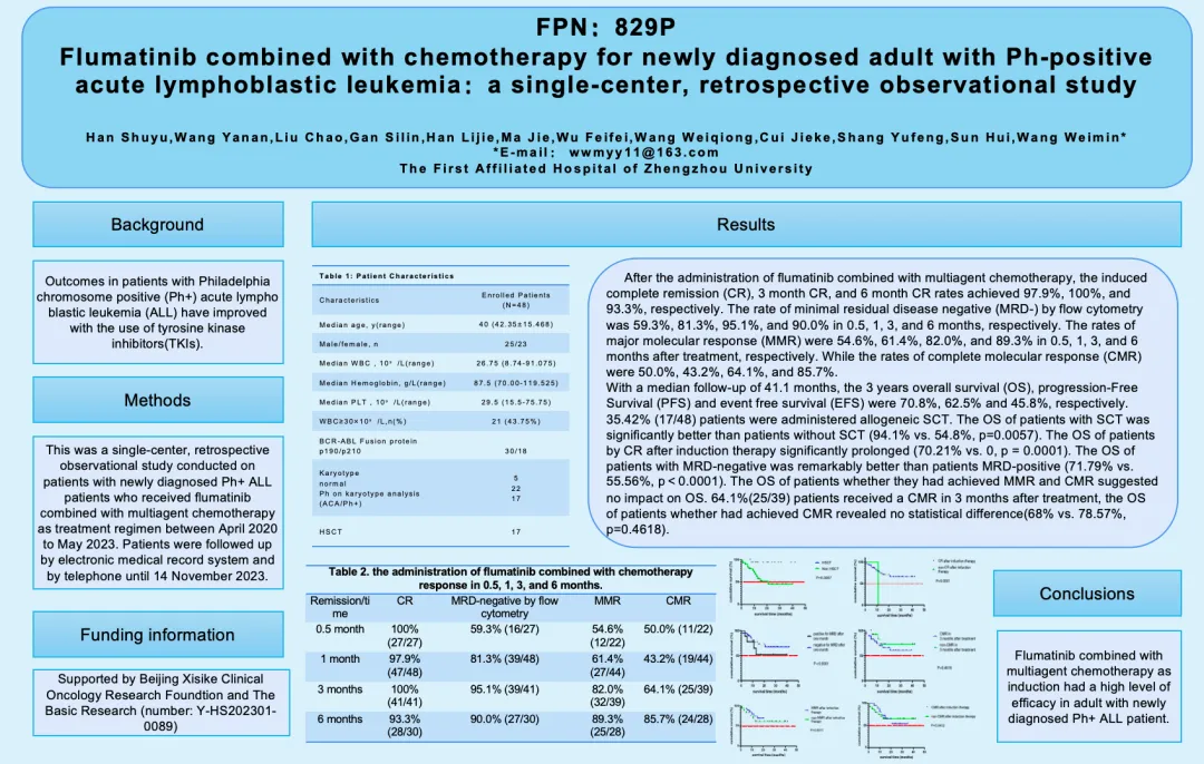 Wang Weimin et al. ESMO 2024 FPN£º829P: Flumatinib combined with chemotherapy for newly diagnosed adult with Ph-positive acute lymphoblastic leukemia£ºa single-center, retrospective observational study.